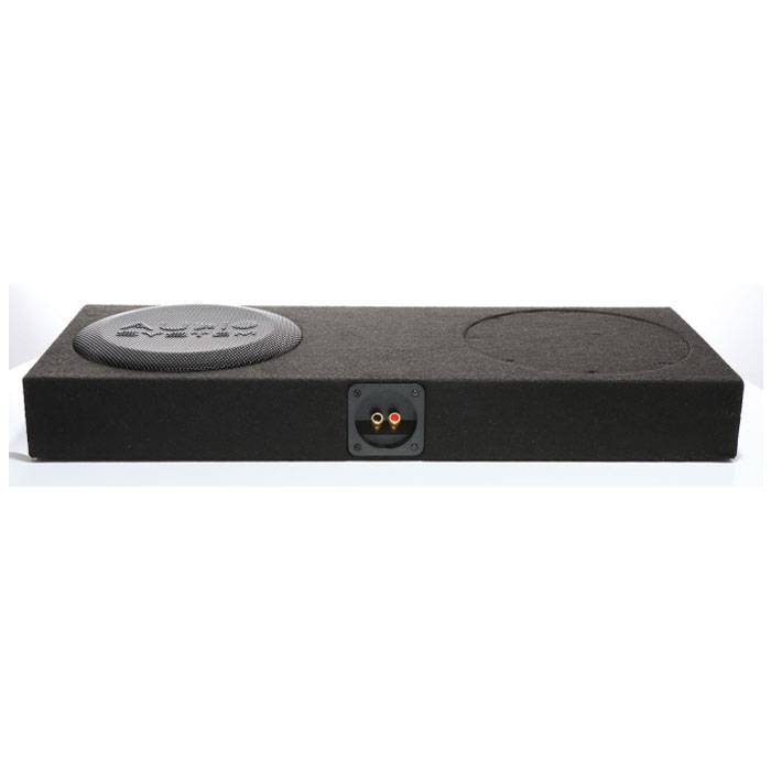 این باکس یک باکس بسیار نازک و فلت است که عمق آن کمتر از ده سانت بوده و کاملا مناسب کسانی است که نمیخواهند فضای صندوق خود را باکس اشغال کنند. این باکس به صورت پسیو بوده و سیم گیرهای بسیار خوب و با کیفیتی دارد. اما ساب ووفر این محصول دو عدد ساب 10 اینچی با توان 180 وات است.