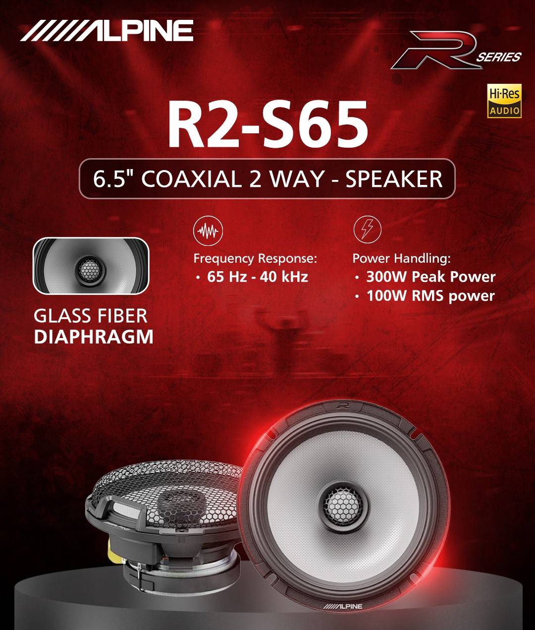 بلندگوی سایز 6.5 اینچ مدل R2-S65 از برند آلپاین Alpine در یک نگاه: